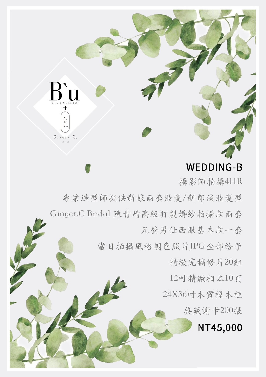 Ginger.C Bridal 與 蘇鳥 Photography 聯名合作,一同滿足每位女孩變成女人的夢想,為您提供自主婚紗/自助婚紗攝影包套服務 此方案主要包含 婚紗攝影、整體造型、新娘禮服、新郎西服。